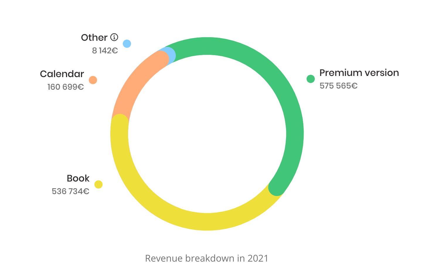 Yuka generates revenue through premium subscription, seasonal calendar and Book. Generated ≈ 1 million in 2021.