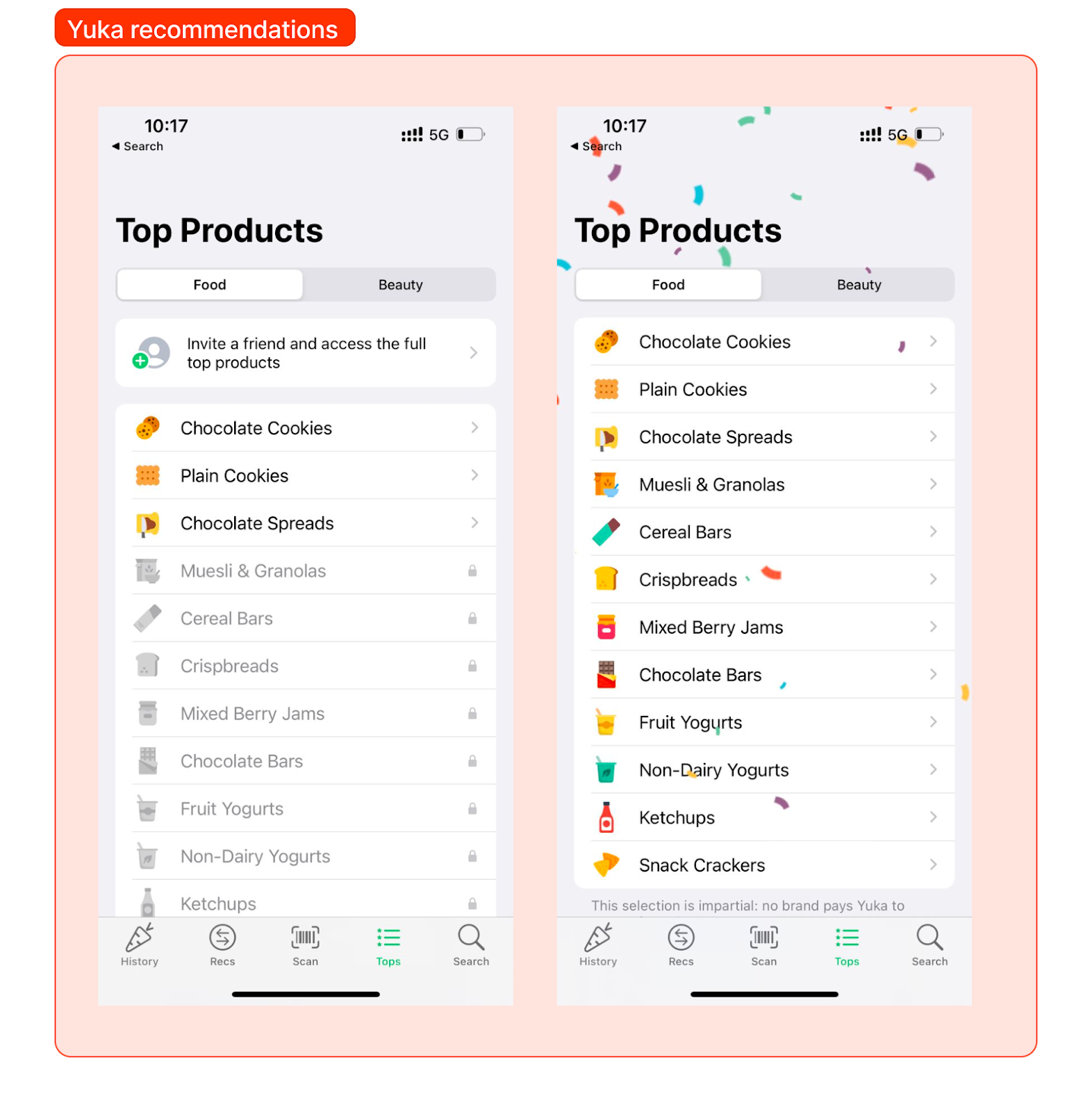 I admire Yuka here because it unlocks the “top products” independent of the referee downloading the app (quite selfless).